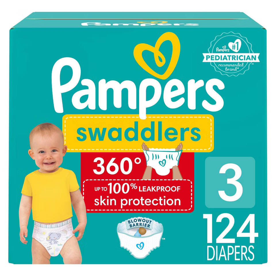 For Baby Diapers Size 124ct 16-18 Lbs Soft Breathable Absorption Leak Guard Stretch Waistband