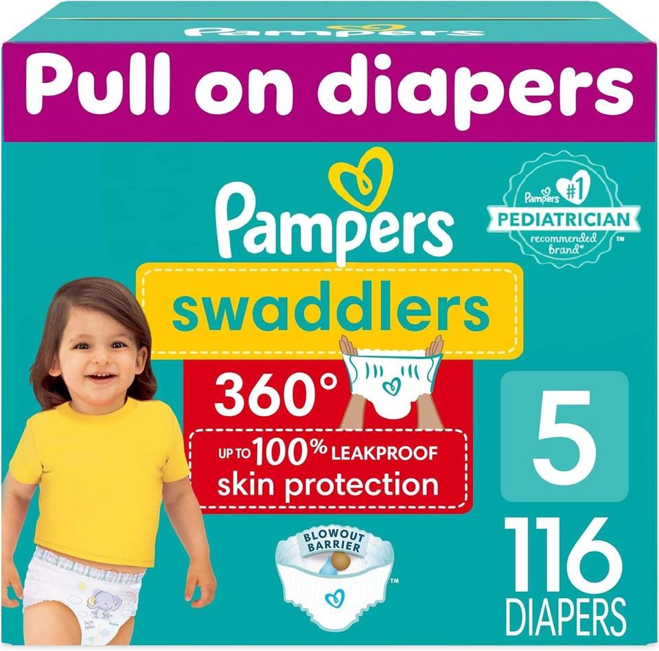 Pampers Swaddlers 360 Pl-On Diapers Size 5 116 Cot One Month Supply Leakproof Skin Protection up to 100% Made of Cotton Babies