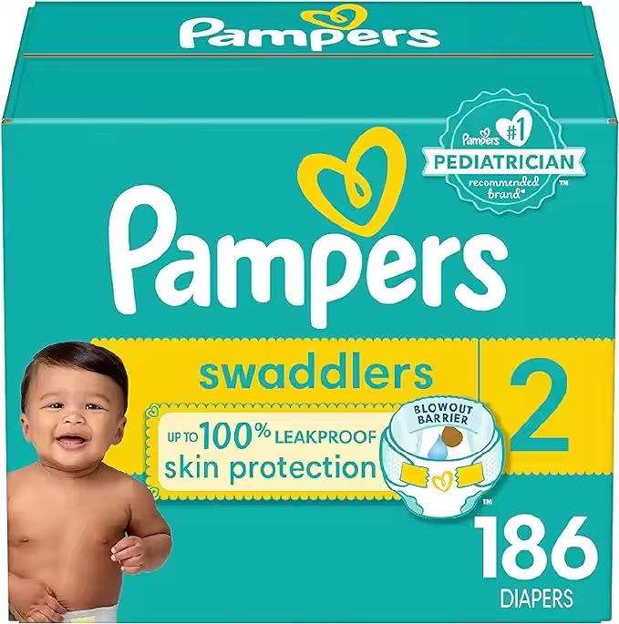 Pampers Swaddlers Diapers - Size 2, One Month Supply (186 Count), Ultra Soft Disposable Baby Diapers