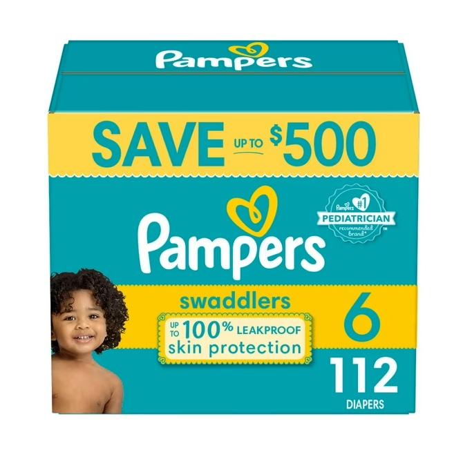 Pampers Swaddlers Diapers, Size 6 (35+ Pounds), 112 Count