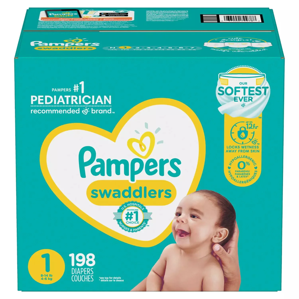 Pampers Swaddlers Disposable Diapers XXL Size (8-14 Lbs) for Babies and Adults Wholesale Pack of 1-198ct Made From Bamboo