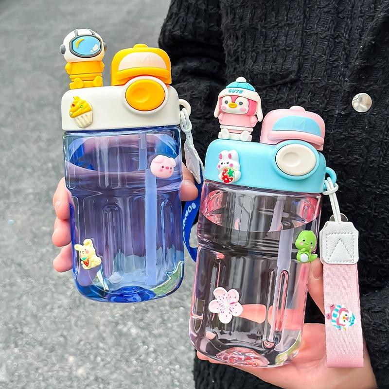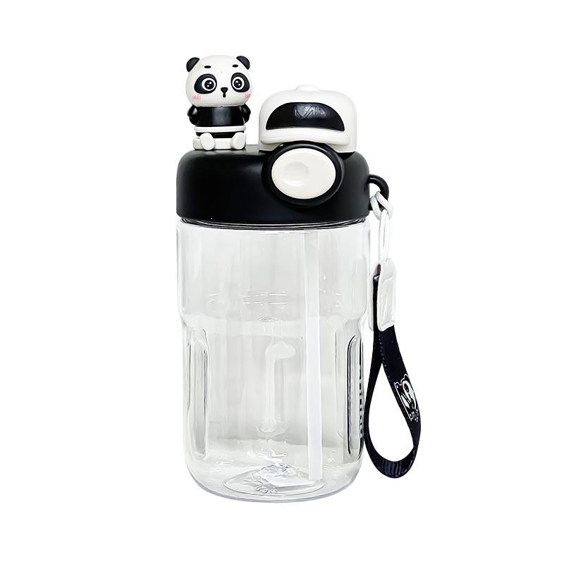 Bouteille d'eau portable Panda Design avec paille 500 ml pour enfants, usage scolaire, gobelet en plastique transparent avec poignée