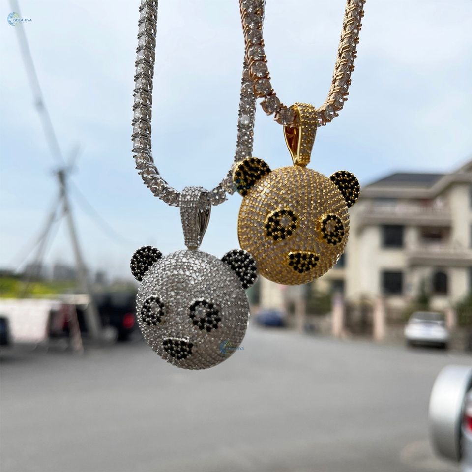 Panda Face Iced Out Hip Hop Pendant Customized Lab Grown Diamond Rapper Style Pendant For Him