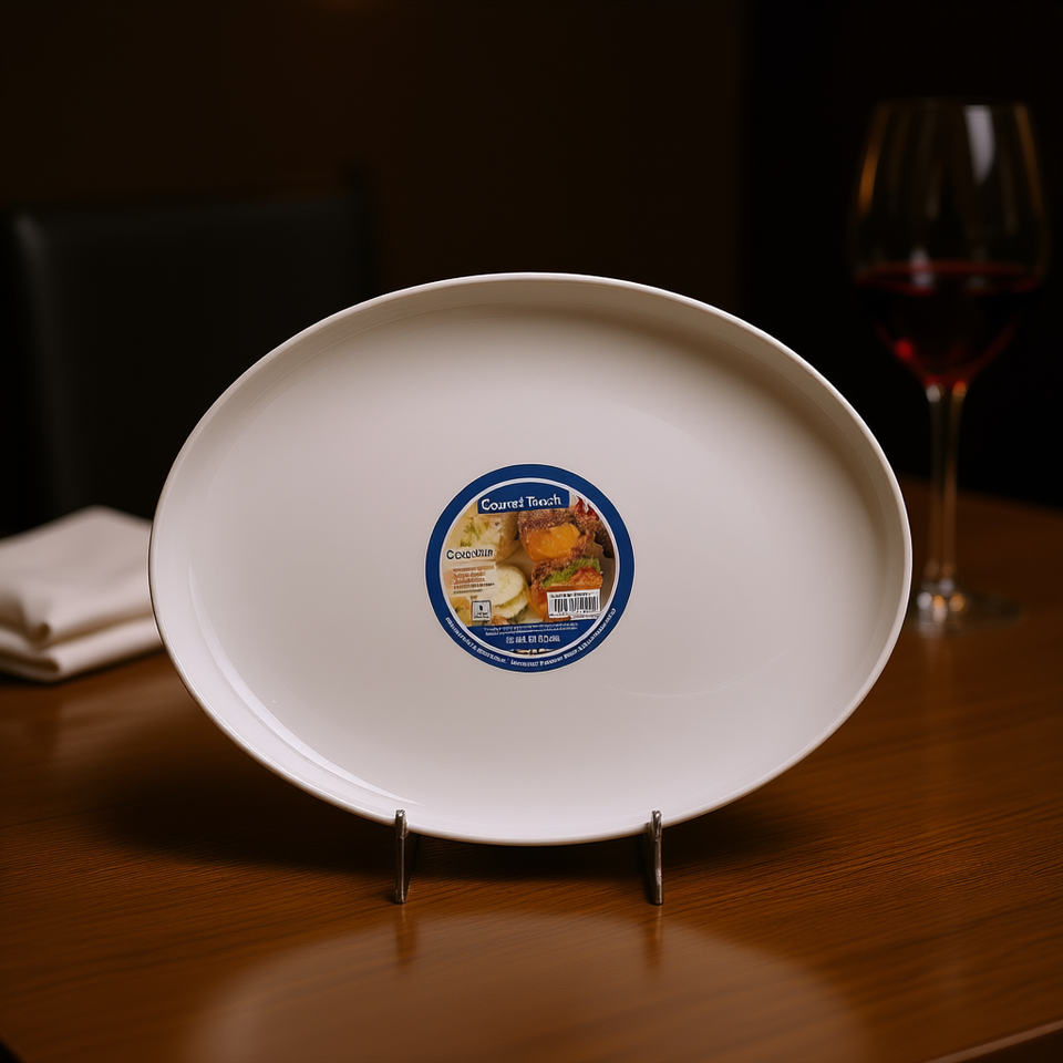 Assiette de service ovale Panda 13 pouces en céramique, design moderne et luxueux pour hôtel, compatible lave-vaisselle
