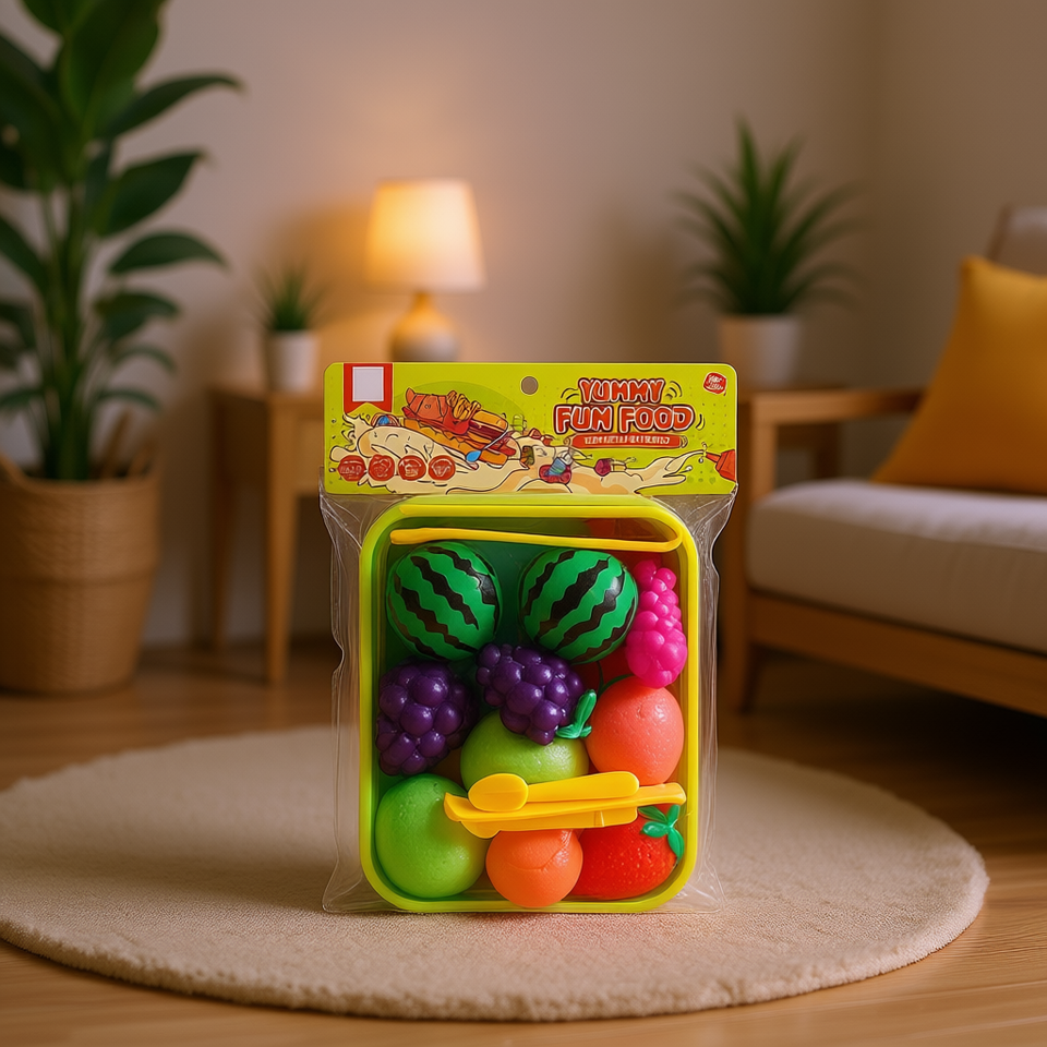 Jouets sur le thème du panda, ensemble de fruits pour le plaisir des enfants lors des jeux