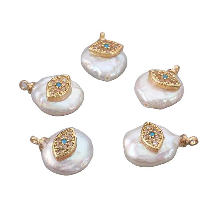PandaHall 10 pièces thème d'été plaqué or véritable plaqué platine oeil cubique Zircon pendentif perle naturelle
