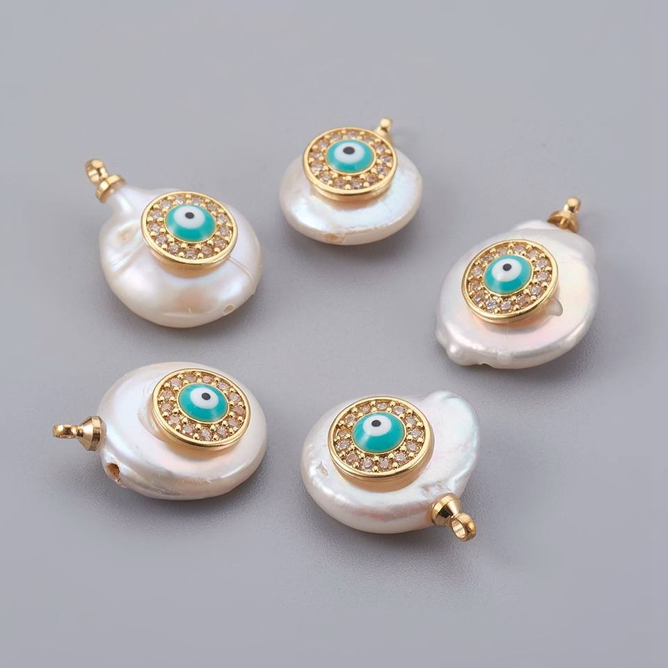 PandaHall 10 pièces thème d'été plaqué or véritable plaqué platine oeil cubique Zircon pendentif perle naturelle