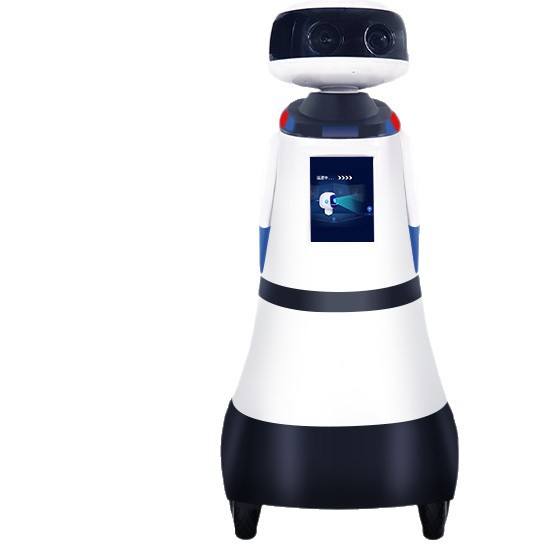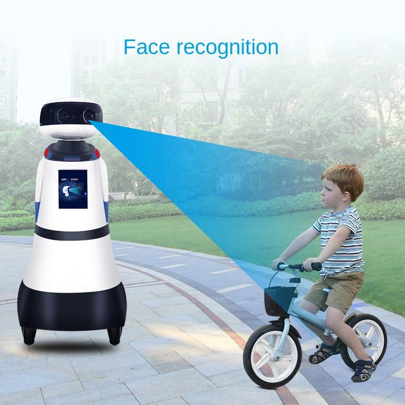Robot de patrouille autonome Pangolin White Cat Sheriff, surveillance vidéo à 360°, analyse intelligente, commande vocale, écran tactile