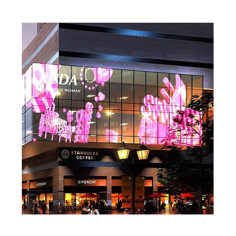 Écran LED transparent pour extérieur et intérieur, grille LED transparente, écran en maille, autocollant, écran LED en verre