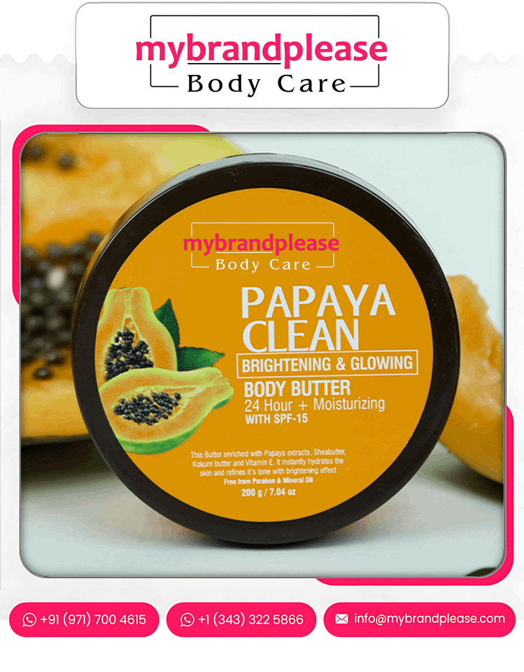 Beurre corporel éclaircissant à la papaye Crème hydratante profonde avec étiquette personnalisée pour améliorer la texture de la peau pour une peau éclatante et saine