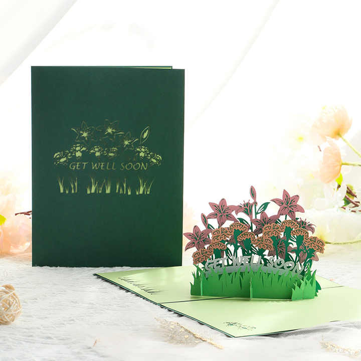 Cartes de vœux 3D en papier, artisanat, fleurs, herbe, « Bonne rétablissement », cartes pop-up pour occasions spéciales, carte artisanale