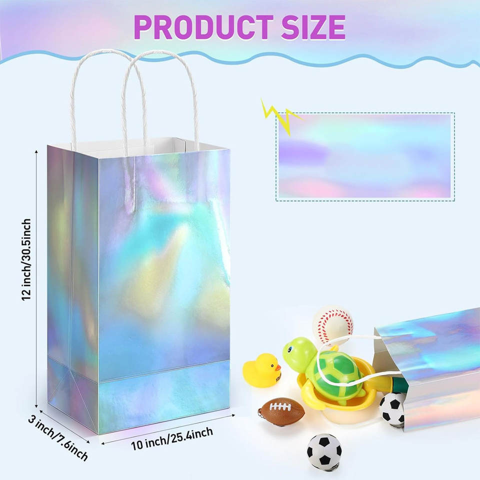 Sac cadeau en papier avec poignée fournitures de fête réutilisables holographique paillettes feuille papier sac à main bonbons Goodie sac cadeau sacs bébé