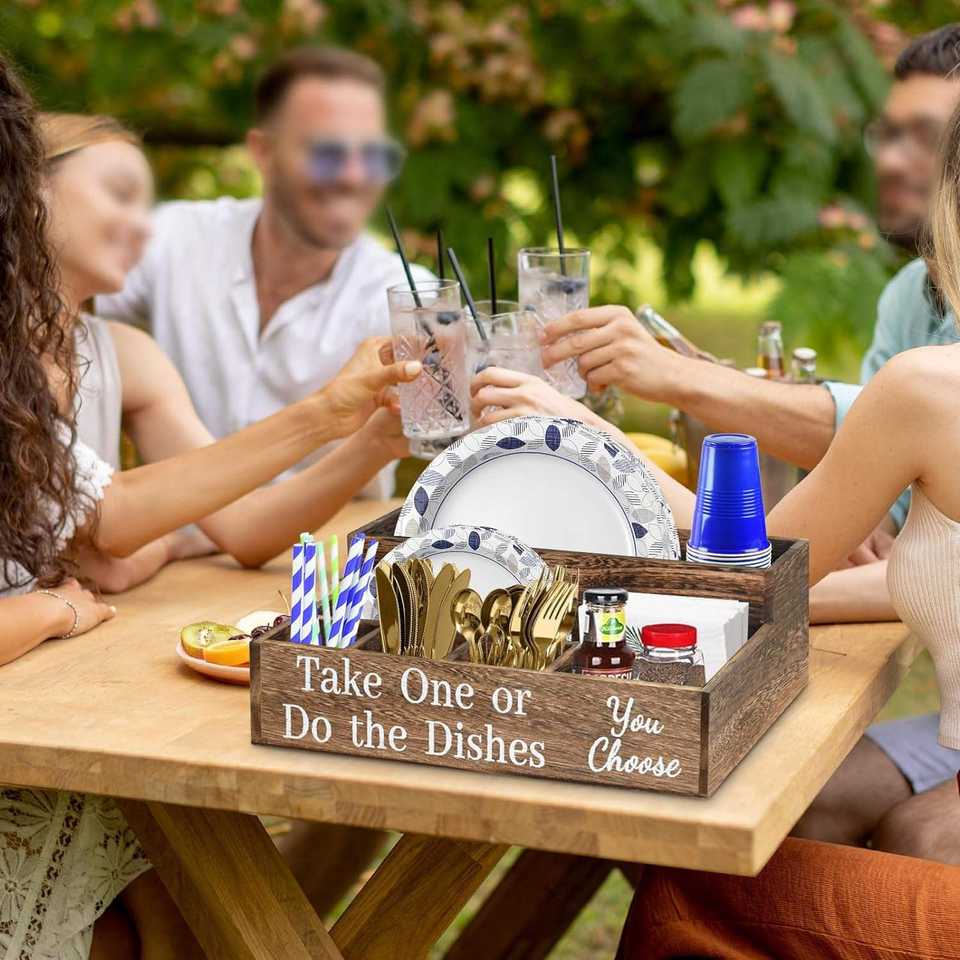 Assiette en papier Porte-boîte en bois de sapin rustique Caddy pour comptoir de cuisine Assiette en papier en bois Organisateur Porte-ustensiles Boîte