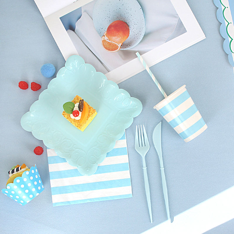 Assiettes en papier de couleur pastel, carrées, compostables, taille dîner, jetables pour anniversaire, mariage, fête