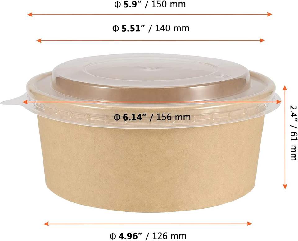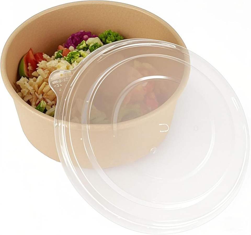 Bol à salade en papier 40oz jetable biodégradable avec couvercle en PET, impression personnalisée en gros pour café, petit-déjeuner, collation, aliments chauds ou froids
