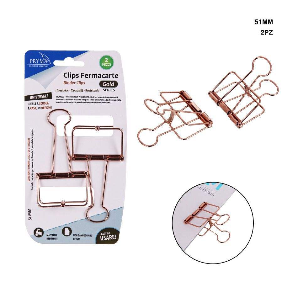 Trombones 51mm 2-pack or rose pour le bureau et l'organisation