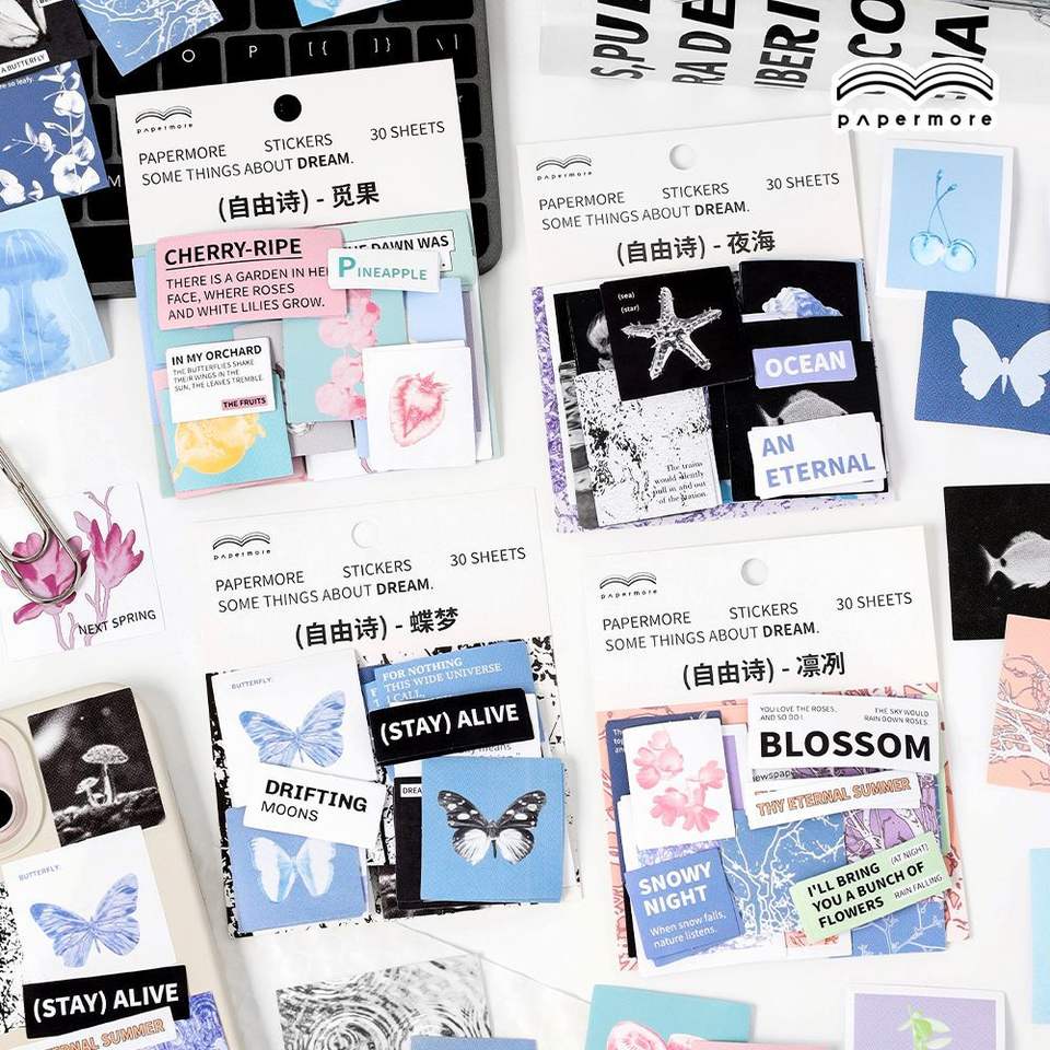 PaperMore Free Poem Series Papier synthétique Autocollant auto-adhésif Packs InS-style Retro Planner Bricolage Matériel Autocollants