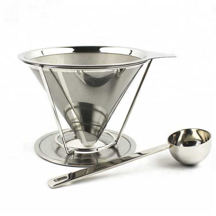 En acier Inoxydable Réutilisable sans papier Verser Sur Le Filtre À Café Cône Goutteur de Café avec Coupelle Amovible Pelle à Café En Acier Inoxydable