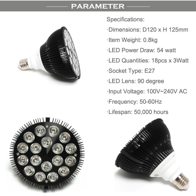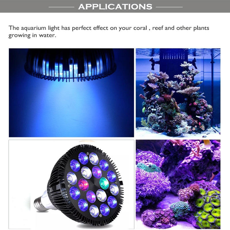 Ampoules Par38 54W LED Nano Aquarium Light E27 Lampe d'aquarium marin 6 Blanc 12 Bleu Utilisé Lumière LED pour coraux d'eau salée SPS LPS