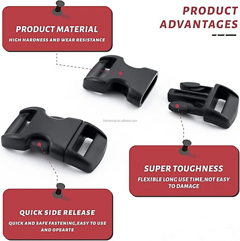Boucle de bracelet Paracord Boucle à dégagement rapide Ceinture Logo de promotion personnalisé et couleur Parachute 550 Boucle en plastique profilée Stock