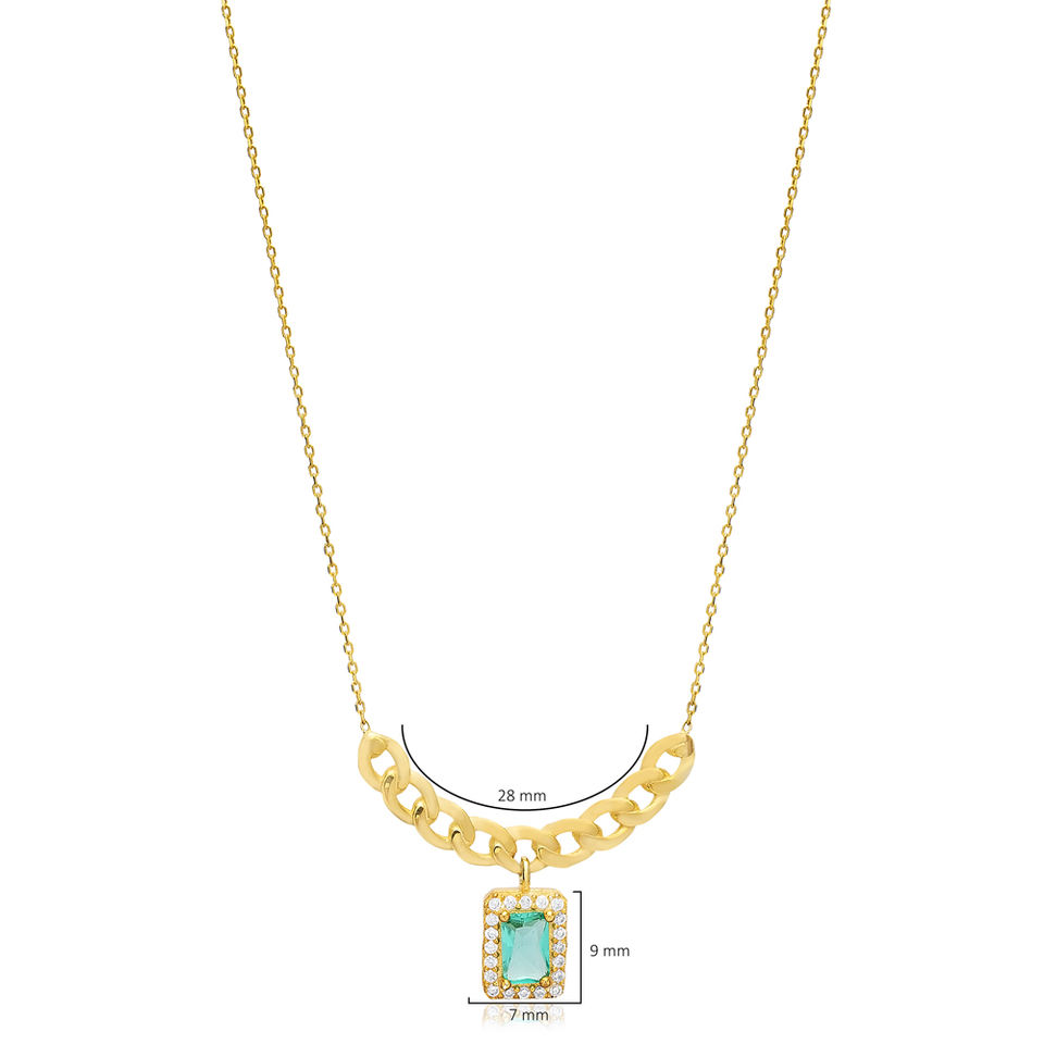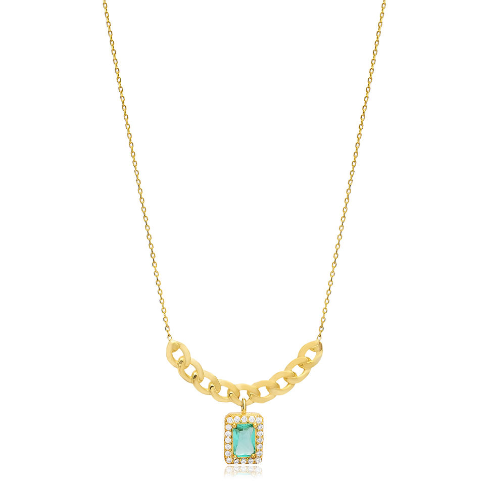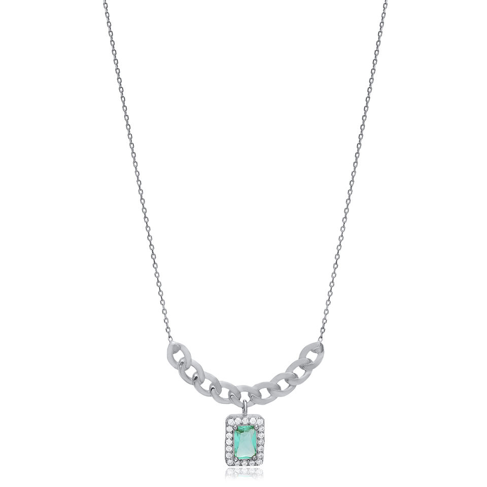 Paraiba CZ Pierre Forme Ronde Charme Collier 925 Argent En Gros Turc Bijoux Fabriqués À La Main