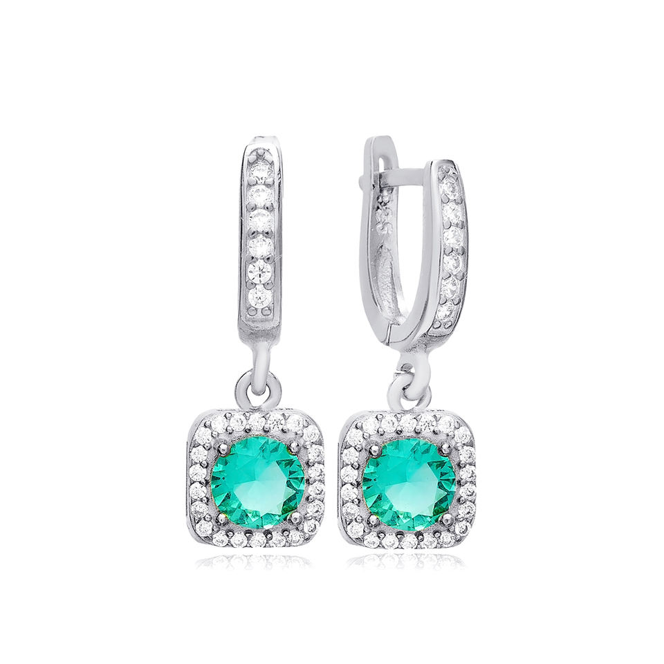 Paraiba Forme Ronde Conception Cubique Zircon Pierre Dangle Boucle D'oreille Fabriqué À La Main 925 Bijoux En Argent