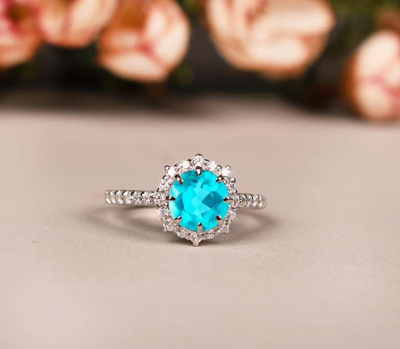 Keyword:Elegant Paraiba Tourmaline Solitaire Ring Sterling Silver
