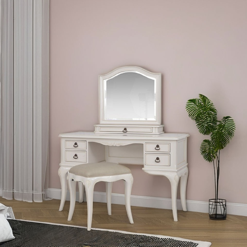 Table de toilette en acajou de la collection Paris de Mebel International, finition blanche, style français de luxe, modèle de coiffeuse pour chambre à coucher