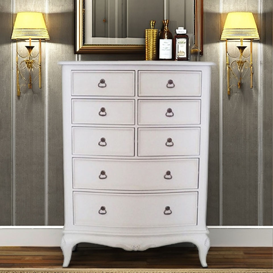 Commode haute en acajou de la collection Paris de Mebel International, style français de luxe, finition blanche, modèle TL
