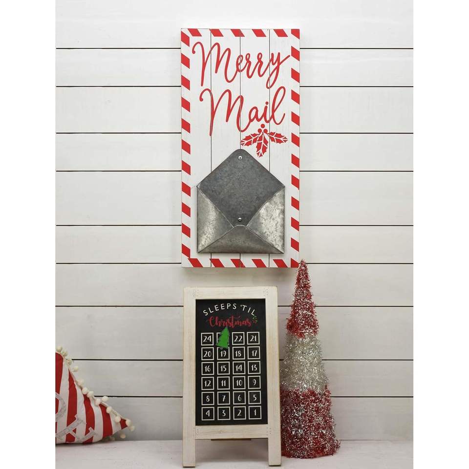 Paris Loft Letters to Santa, Christmas Sign, Christmas Card Holder, Merry Mail Wall Decor, Wood Holiday Sign, Mail Holder, Wall