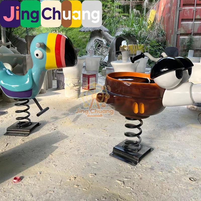 Cheval à Bascule Extérieur en FRP pour Enfants, Modèle Hokey Pokey, Équipement de Loisirs de Maternelle à Ressort