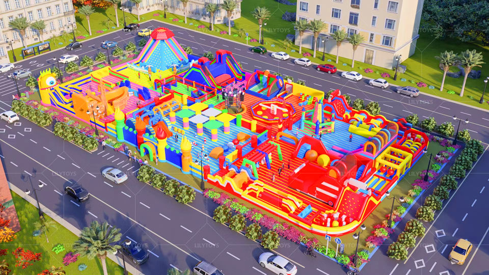 Color:Customized+ Inflatable Obstacle Course With Water Slide