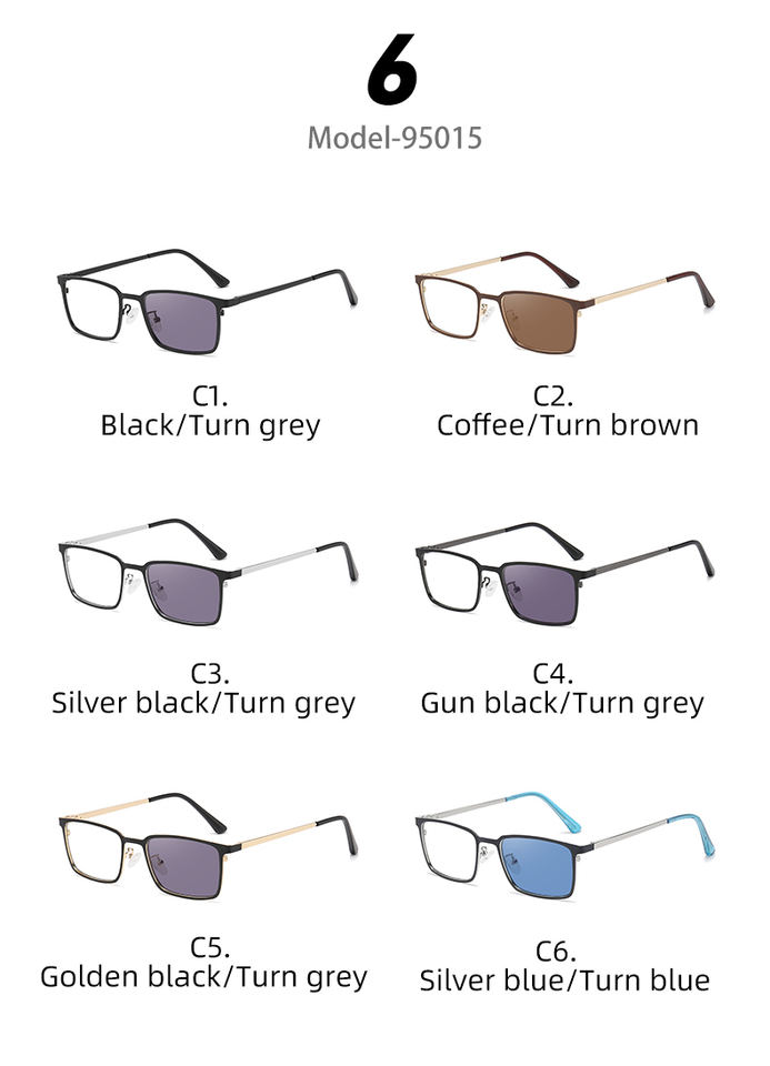 Partagas Mode Photochromiques Photogray Rectangulaires Anti-Lumière Bleue Blocage de Couleur Lunettes Optiques Monture pour Hommes