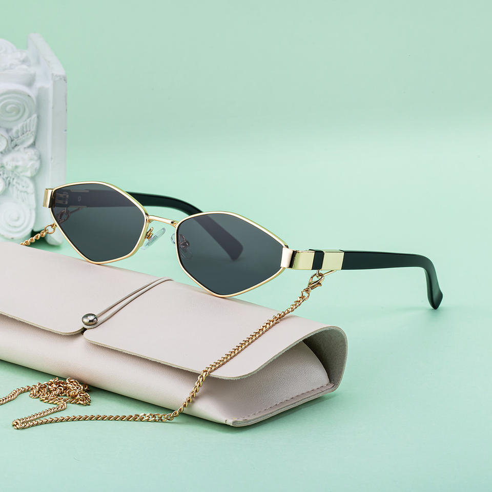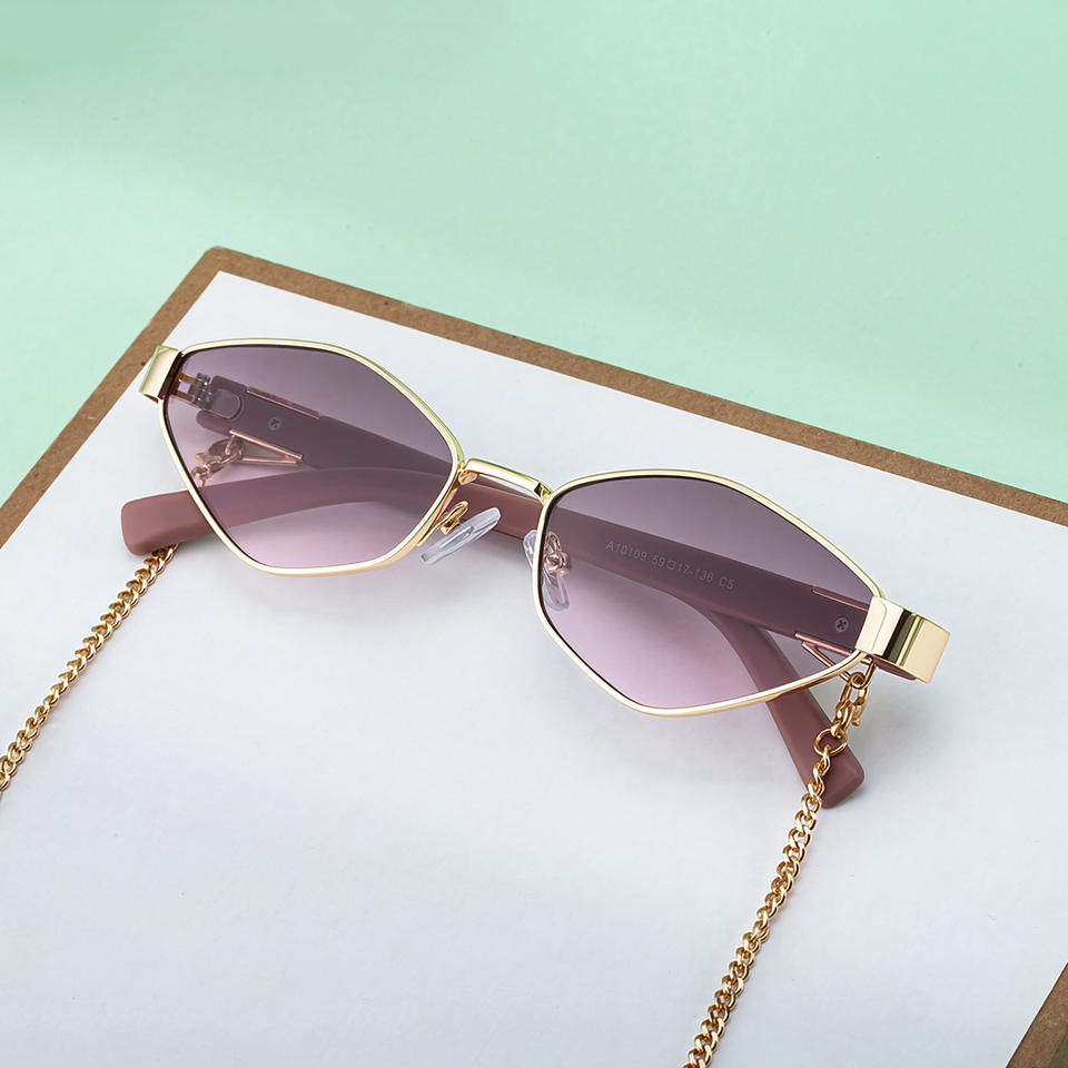 Lunettes de soleil Partagas Polygon, monture complète, chaîne en alliage de cuivre pour femmes, style streetwear