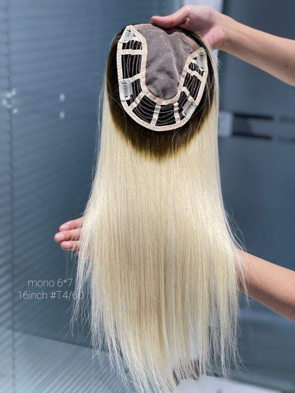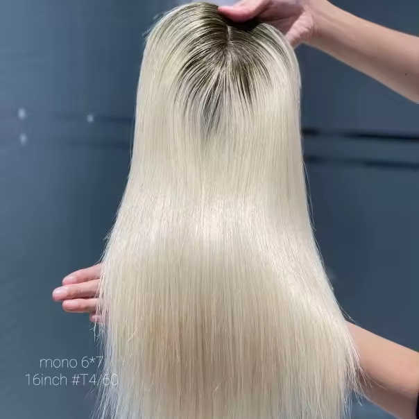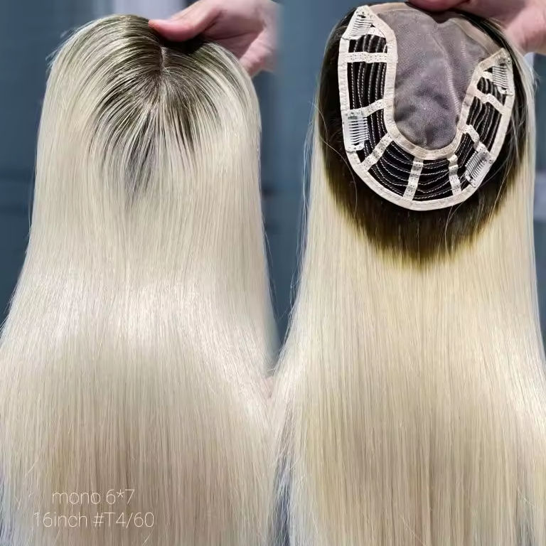 Parting Anywhere 6*7 Lace Mono Toppers 16 Inch Remy Virgin European Human Hair Raw # T4/60 pour la dentelle dans les cheveux SHY