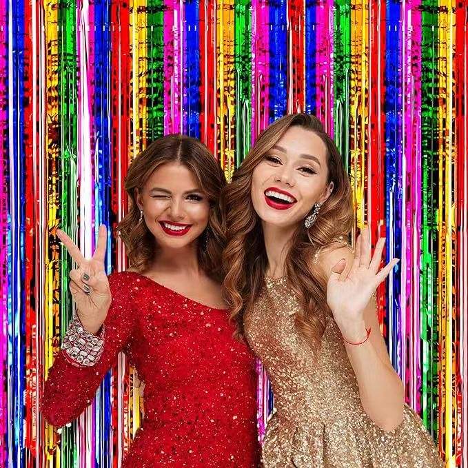 Rideau de fête décoratif en feuille métallisée arc-en-ciel, 1x2m, coloré et lumineux, pour porte