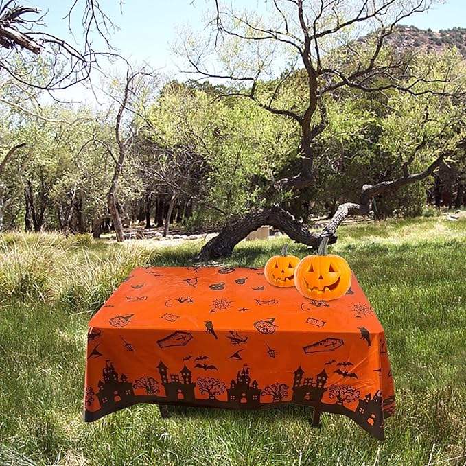 Décoration de fête nappe imperméable et résistante à l'huile jetable chauve-souris tête de citrouille château décoration de table pour la fête d'halloween