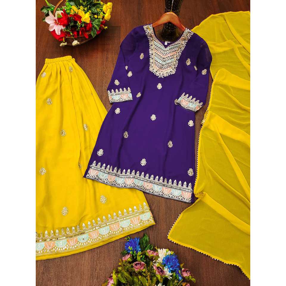 Party Jumpsuit with Embroidered Work Coding Sequence Sharara Suit for Special Occasions