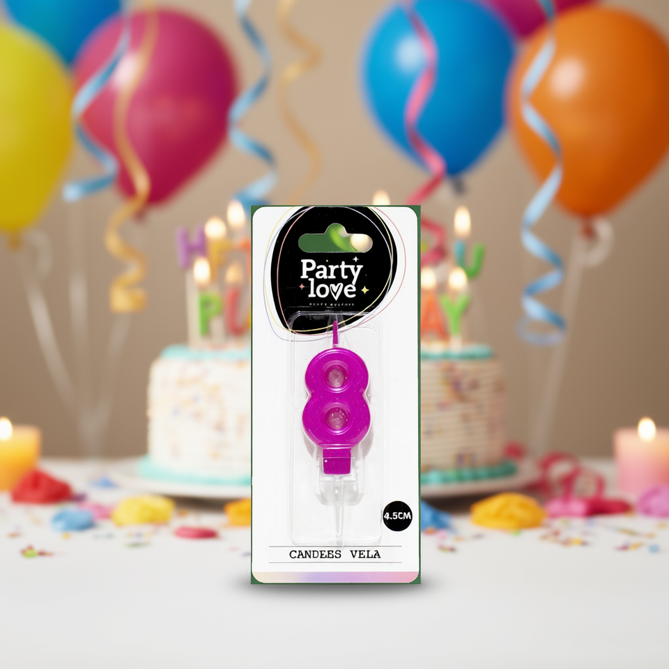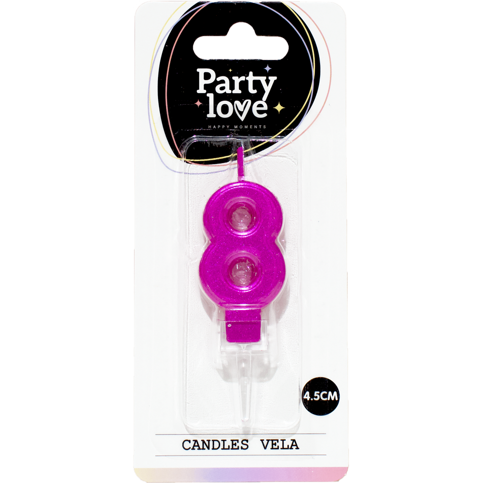 Bougie d'anniversaire Vela Party Love Fuchsia Numéro 8 4,5 cm