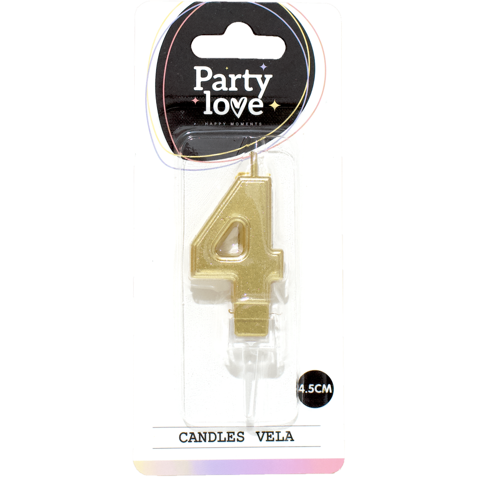 Bougie d'anniversaire dorée numéro 4 Party Love, 4,5 cm, bougies Vela
