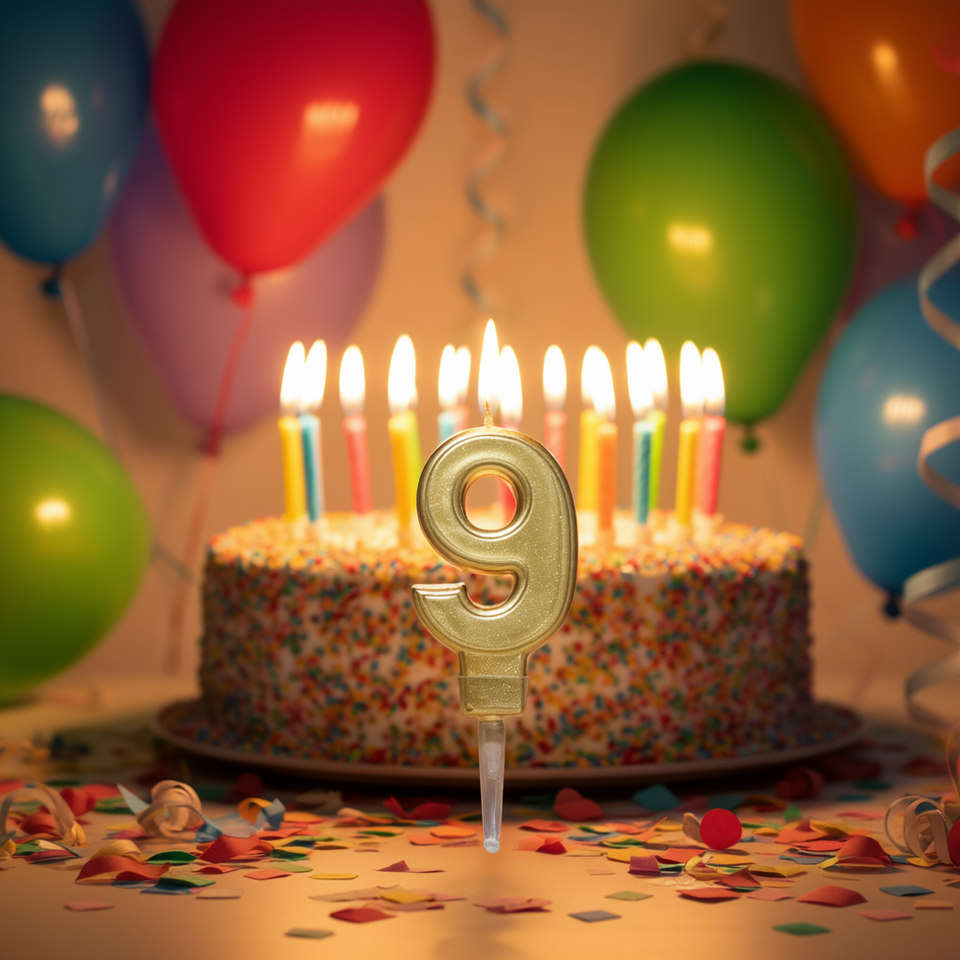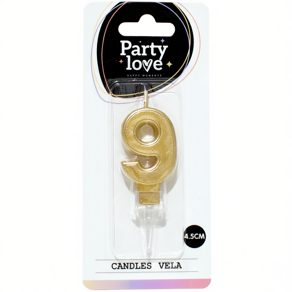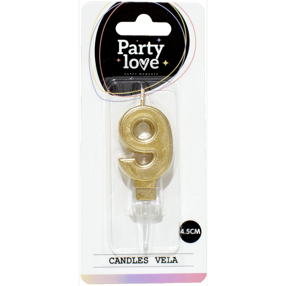 Bougie d'anniversaire dorée numéro 9 Party Love 4,5 cm Vela