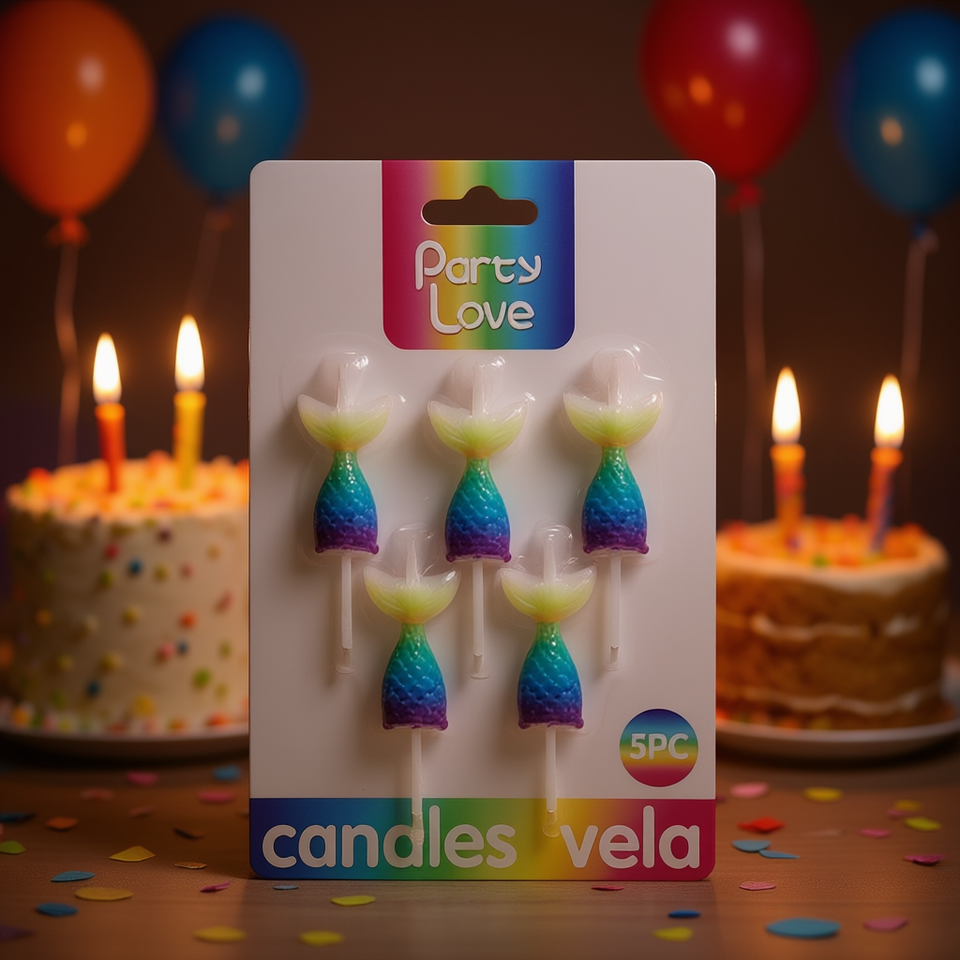 Bougies en forme de queue de sirène Party Love, 5 pièces, décorations d'anniversaire