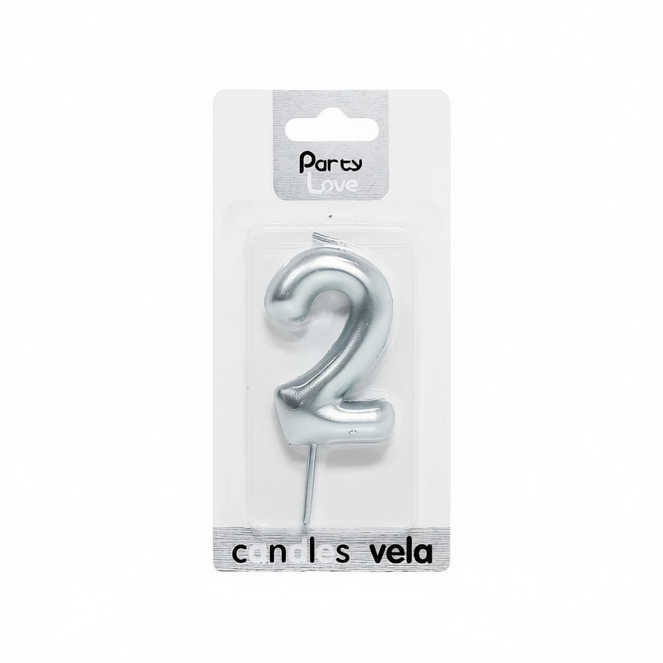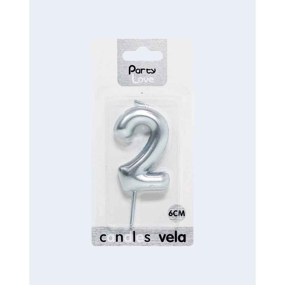 Bougie argentée numéro 2 Party Love, 6 cm, décoration de gâteau d'anniversaire