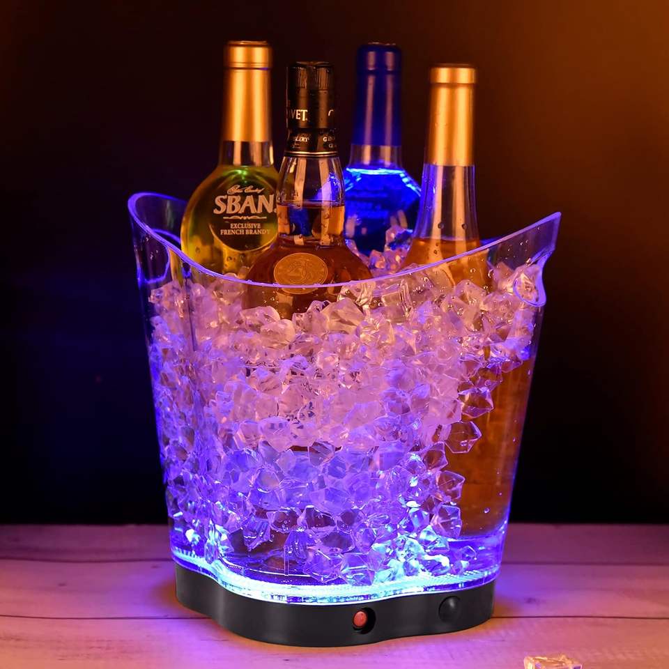 Seau à glace à LED dégradé coloré portable de 6 litres en plastique pour champagne et vin pour la bière