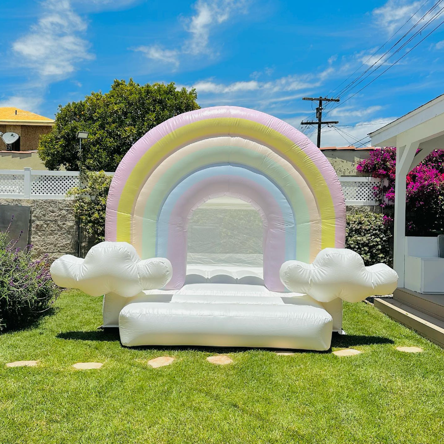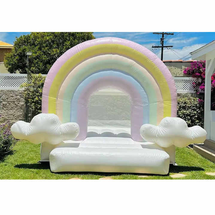 Équipement de location de fête gonflable en plein air fille garçon nuage arc-en-ciel maison de rebond pour sauter