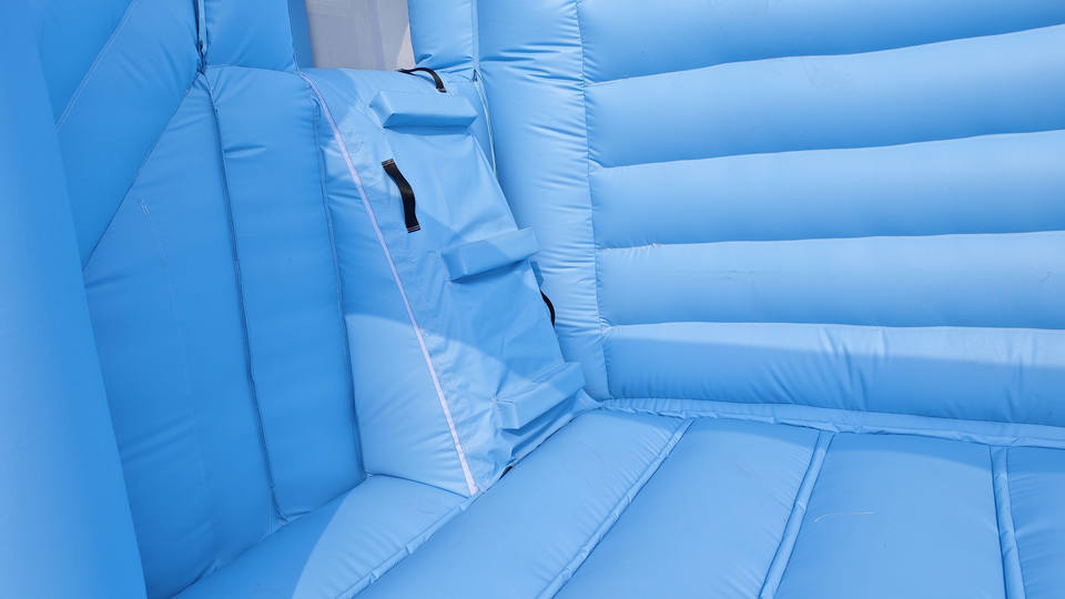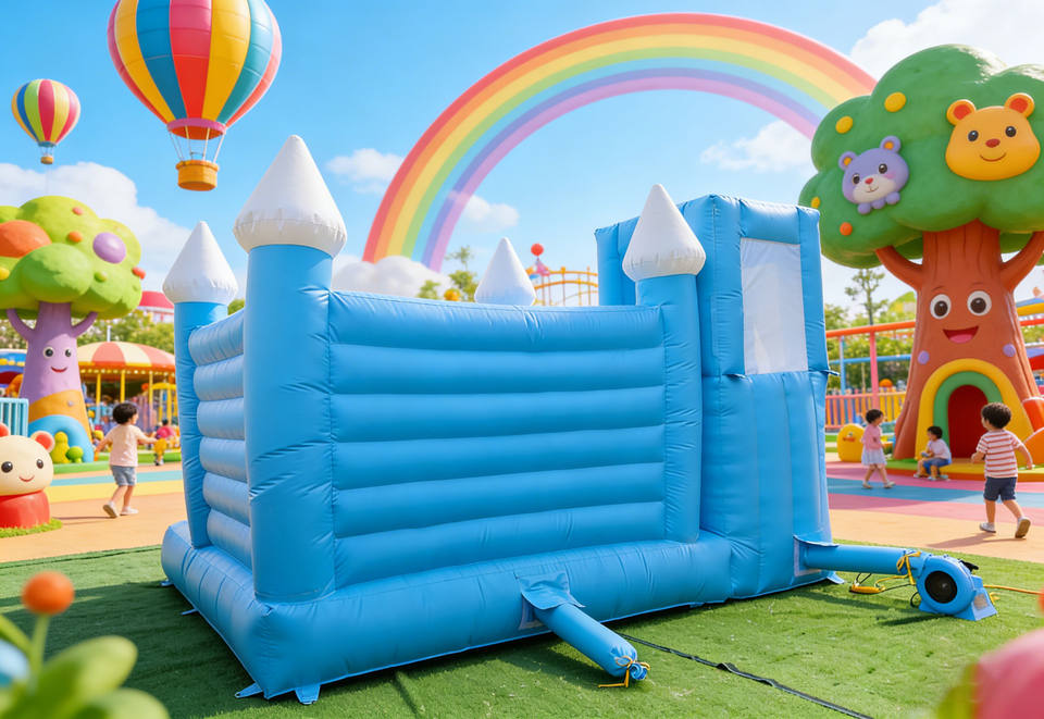 Location de château gonflable blanc moderne de grande taille avec toboggan et fosse à balles, en PVC, pour usage commercial, installation facile, capacité supérieure à 400 kg