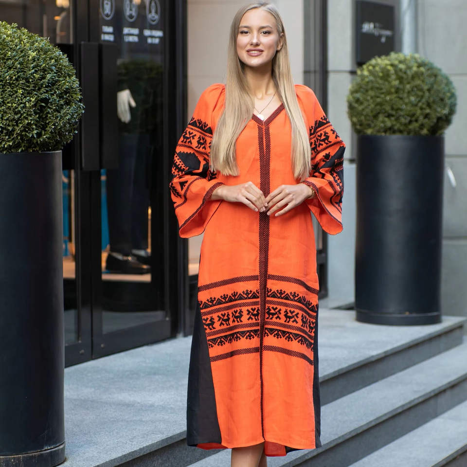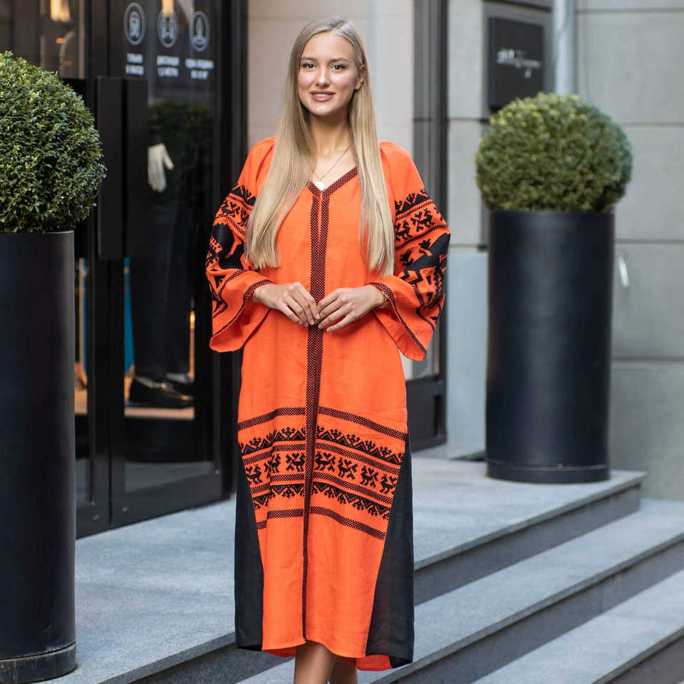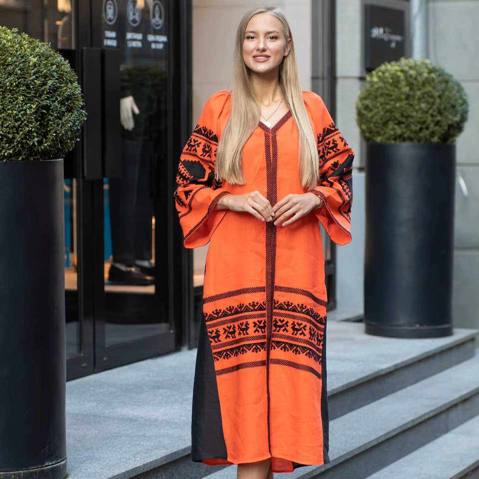 Party-Style Elegant Embroidered Cotton Ukrainian Dress Women Long Sleeves Ankle Length High Collar Lace Midi 4XL