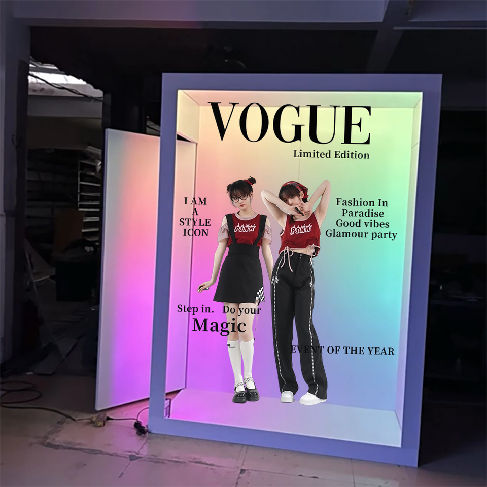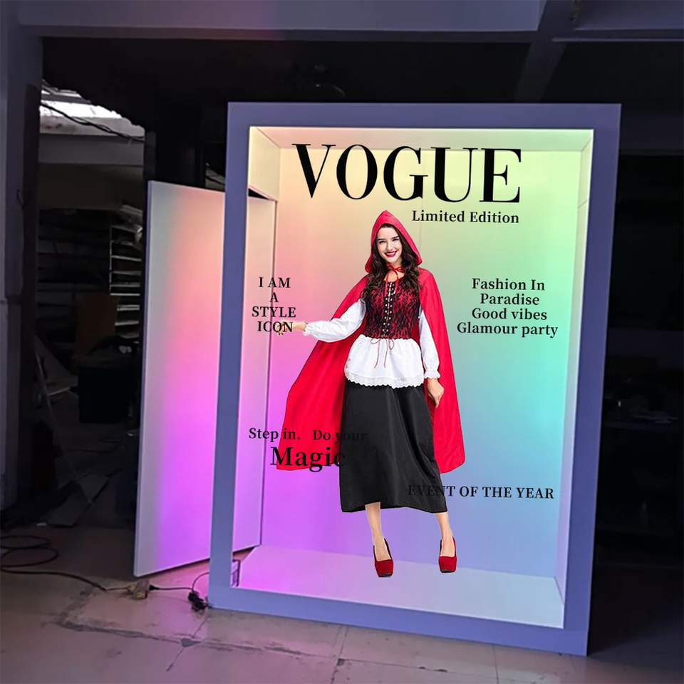 Articles de fête Fonction métallique amovible Tunnel RVB Miroir néon Photomaton Boîte de fond décorative pour fête