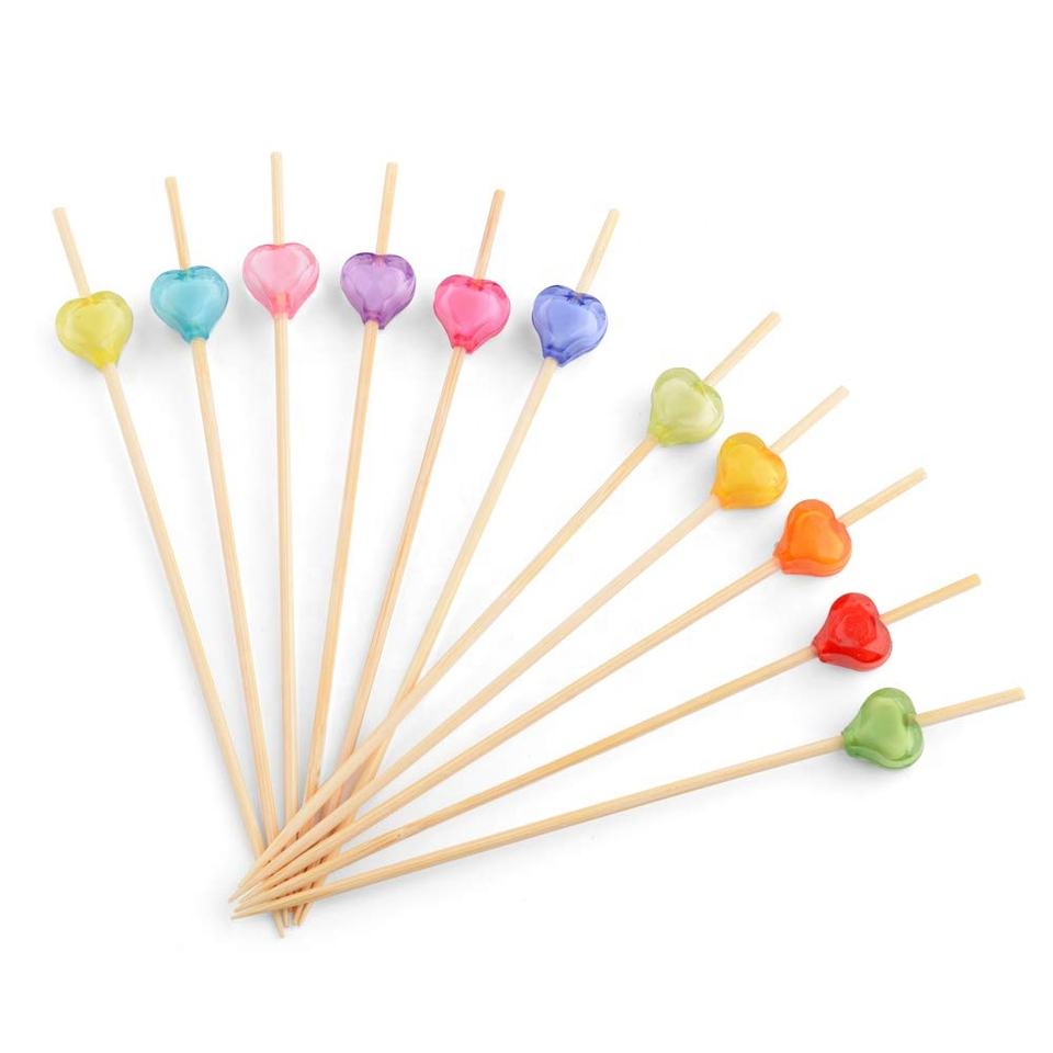 Fournitures de fête, pics en bambou perlé colorés assortis de 4,72 pouces, brochettes fantaisie, bâtonnets à cocktail