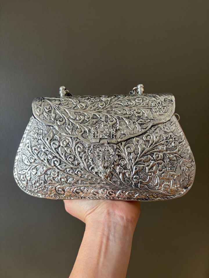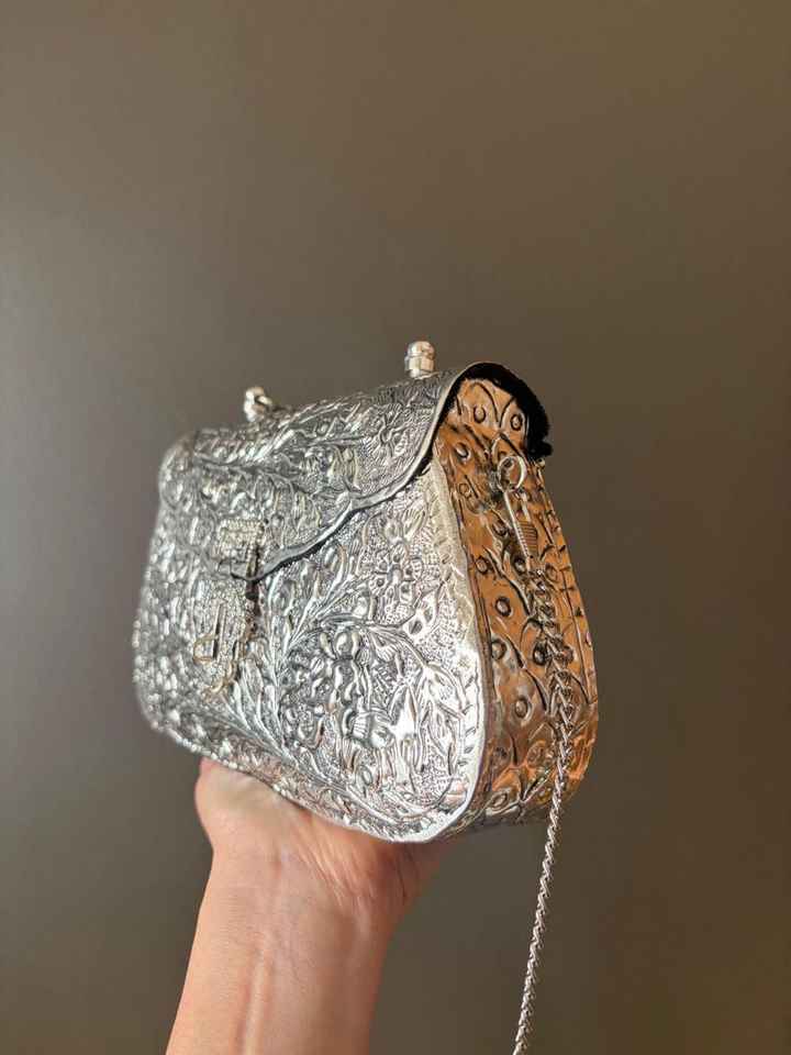 Sac à bandoulière fantaisie en argent plaqué avec motif gravé, design personnalisé pour tenues de soirée, à prix avantageux par Uo